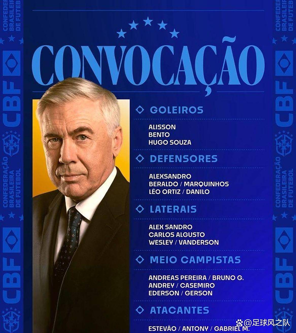国家队比赛日的名单总能引发不少讨论,这次安切洛蒂公开的巴西队大名单也不例外。十月份对阵韩国和日本的两场友谊赛,名单本身没有带来什么颠覆性的变化,但几个名字的进出,还是能看出安帅的一些思路。
